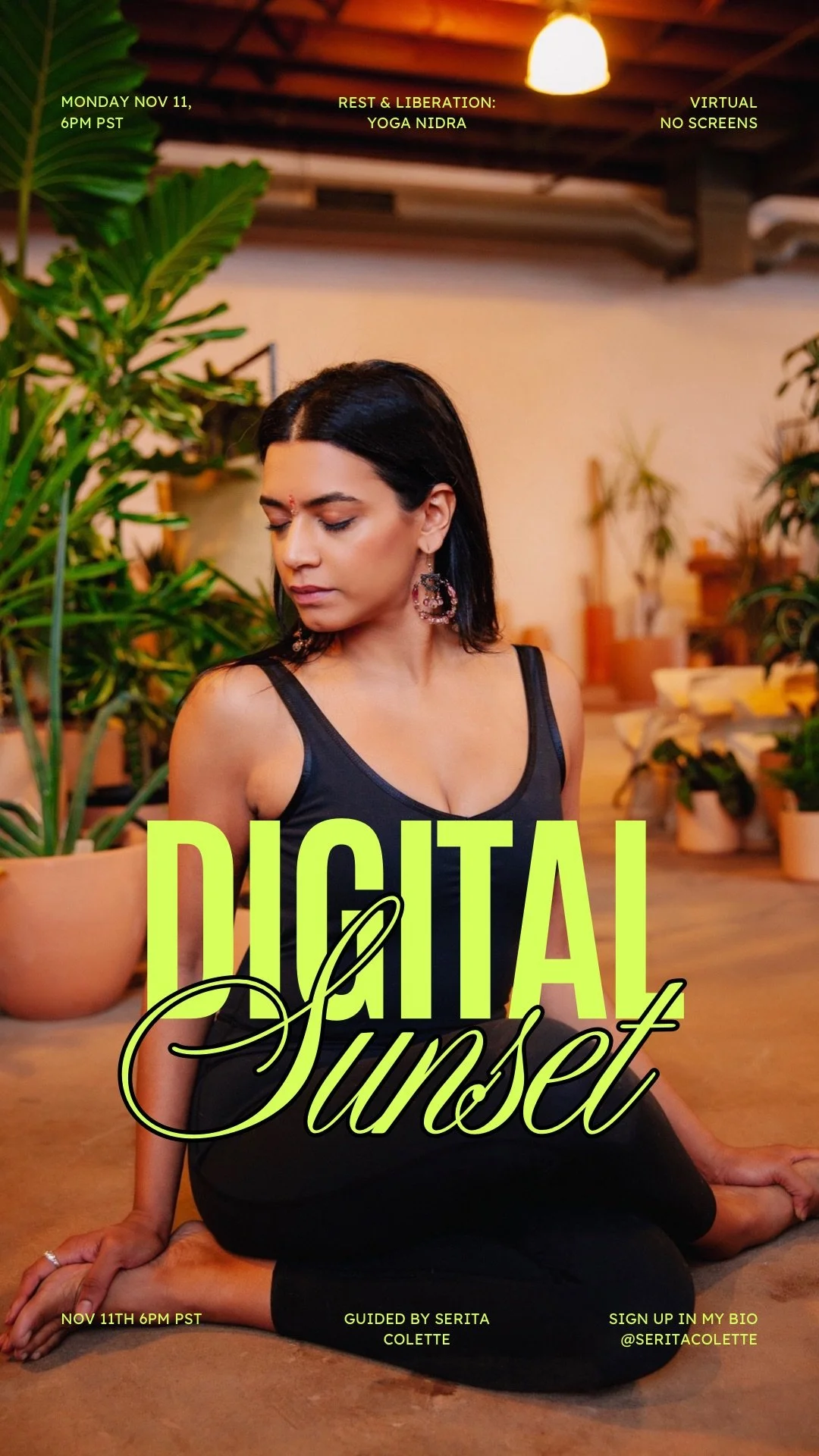 Join Serita Colette in a one of a kind practice and meditation experience just in time for the Spring Equinox. This is about rest, reclamation and collective care. Digital Sunset utilizes the sibling sciences of Yoga, Ayurveda, and Dharma to rest in the gentle awareness of now.