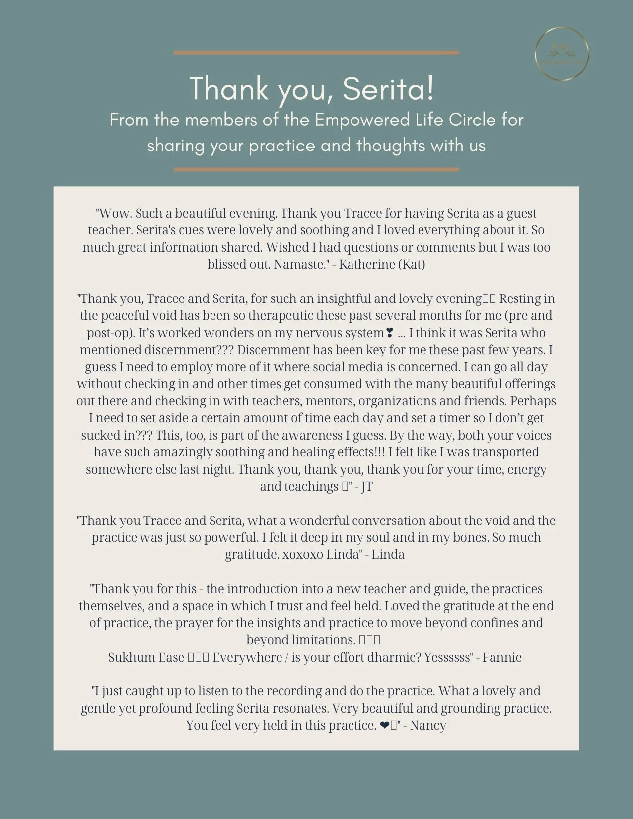 “We are delighted to have the divine Serita Colette as our special guest on July 29th - 6:30pm - 8pm MT Serita will be in short conversation with Tracee and then lead us in a yoga nidra practice.
